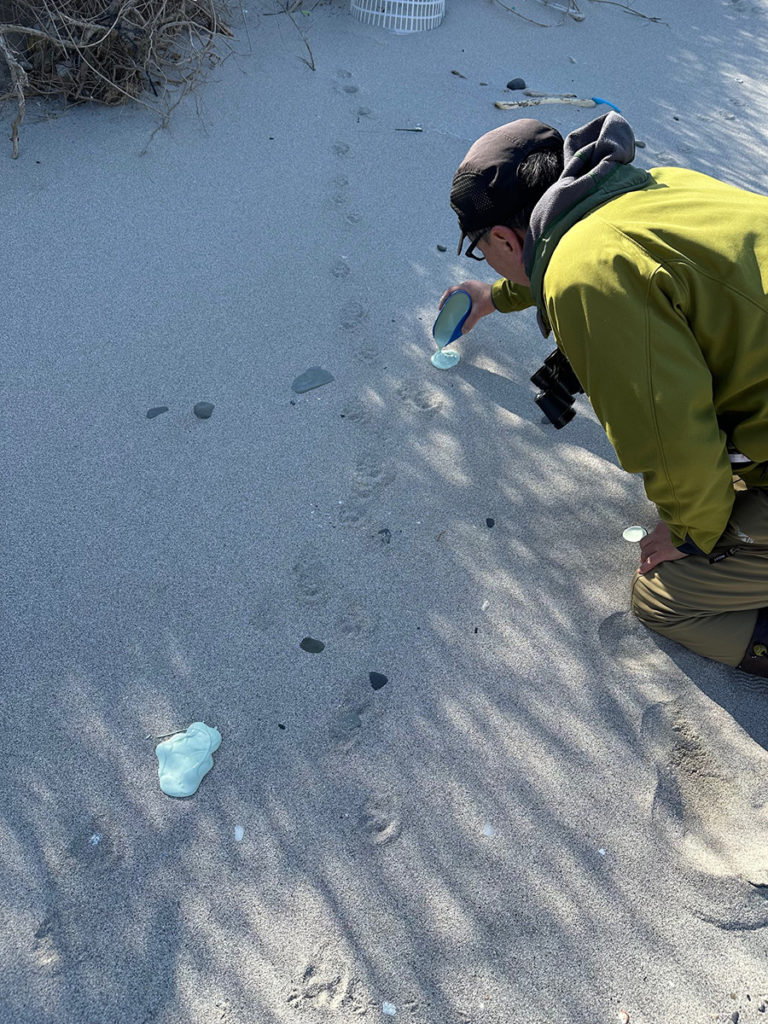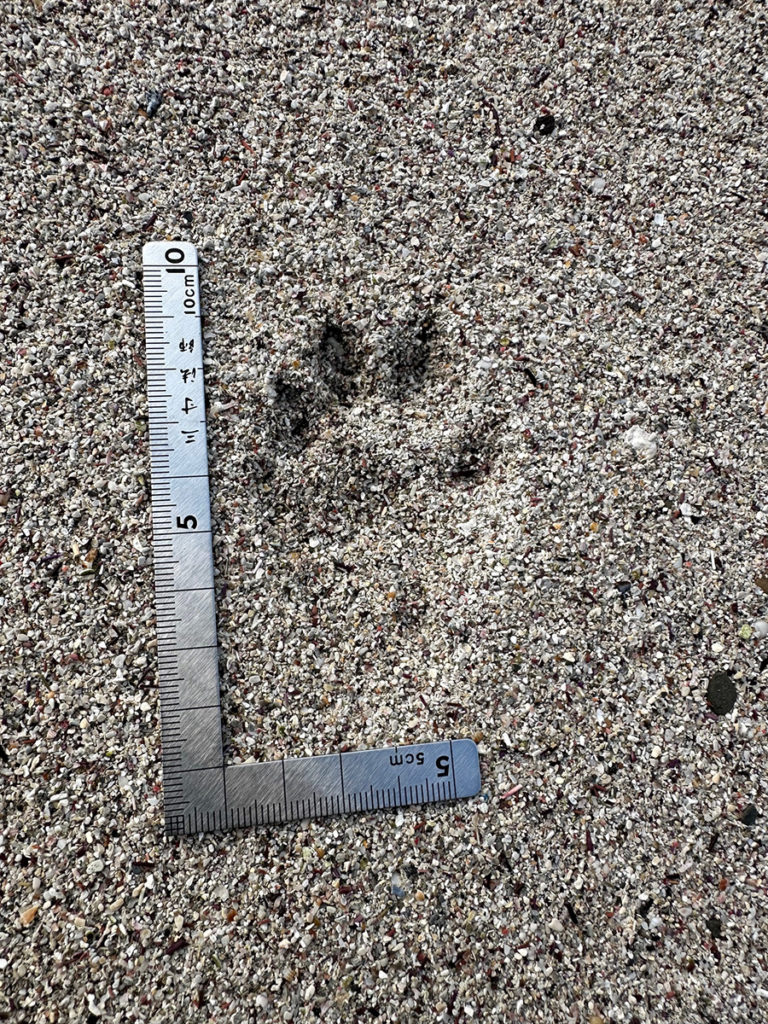 確実なカワウソの痕跡やカワウソが休息できるような池などが存在しないことが分かりやや残念な調査結果でしたが、2023年の足跡はカワウソの可能性があるため時々この島にカワウソが寄って砂丘前の湾で魚を取っているかもしれません。