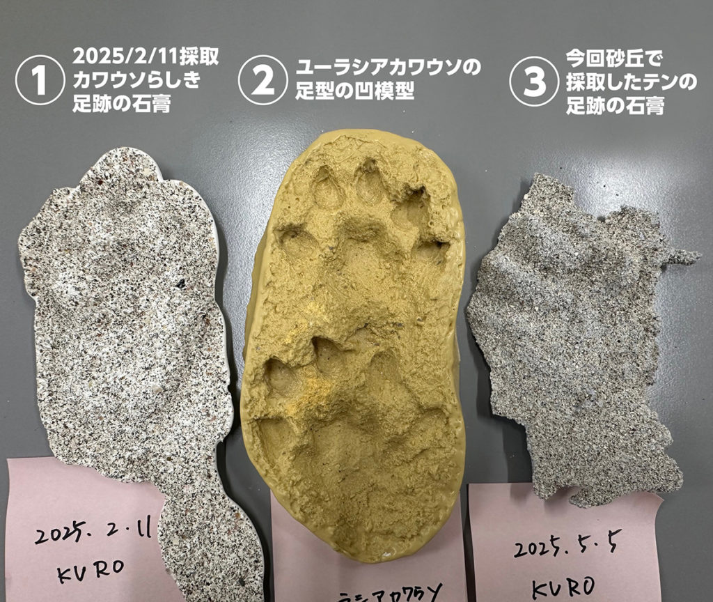 今回、テンの確実な足跡を採取できたため、過去にこの黒島での調査で採取した足跡を検証することができます。